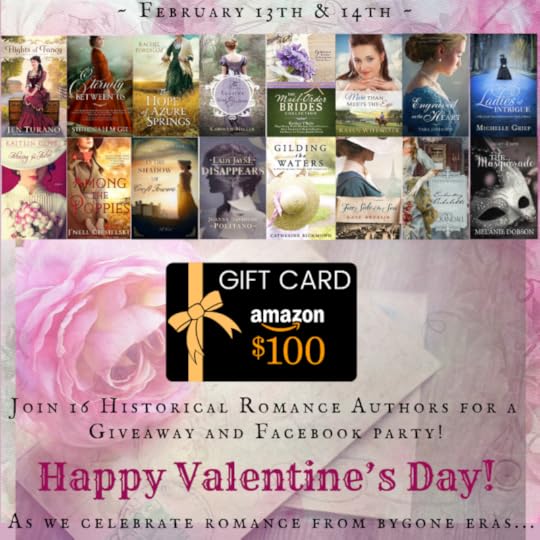 Join us February 13th and 14th for a Facebook party! 16 historical romance authors would love to meet you and share their stories and ideas for celebrating this most romantic day of the year! Also enter here for your chance to win one of our three prizes: 16 novels, a $100 Amazon gift card, or a Jane Austen book bag!