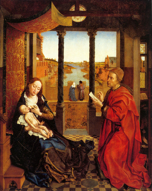 The scene is set, not in Palestine in the first century, but in Flanders in the fifteenth century. Why is that? Because the artist--Rogier Van der Weyden-- wants to show that the mysteries he is portraying are timeless. They are alive in his own time. They are alive here and now in this present moment.