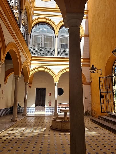 I’ve been writing a book about a woman who decides to pursue her dead husband into the underworld. As a prelude to doing this, naturally she tries to contact him via medium. Since I have no idea what it’s like to consult a medium, I had been thinking that I should find out…and, arriving in my airbnb in Seville, what should I find on the bedside table but an ad for the host’s occult services! Spooky!