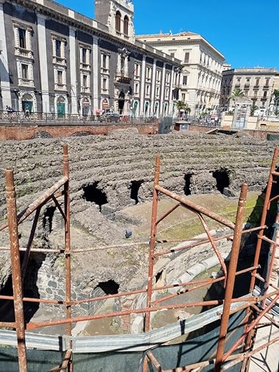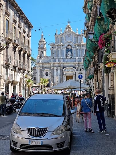 Mt Doom. I mean Etna.Speaking of which, Mount Etna looms snow-capped in the distance while Catanians go about their cheerful business. Must have been a lot like that in Pompeii. I feel potentially doomed – but happy!