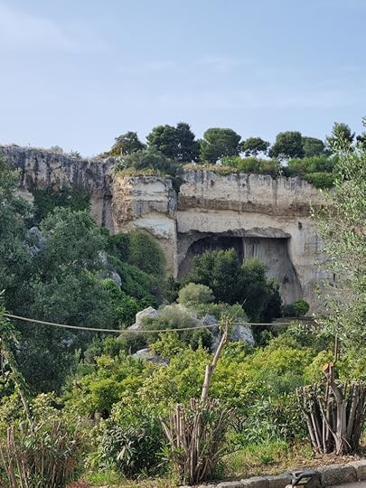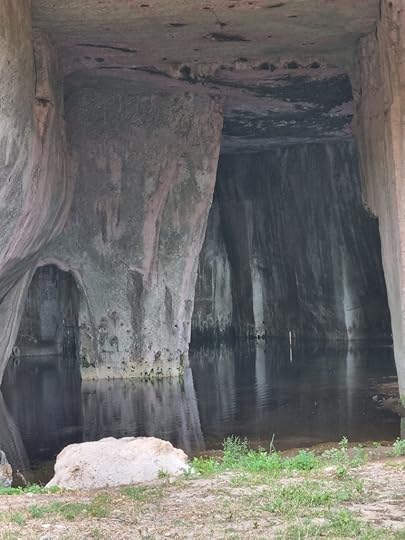 I went to the stone quarries of Siracusa, Sicily, last week. Around the 5th century BC, thousands died there of starvation and hard, pointless labour. The quarries were stocked not only with slaves and the Tyrant’s (dictator’s) political prisoners but also with the survivors of the famous Athenian defeat in Sicily. I can’t remember how many men set out on the great expedition from Athens to Syracuse in 413 BC, but I’ve read that at least 40,000 died there, either in battle or in the quarries. One man managed to find his way home, broken and starving; he was almost killed by the mob (so Thucydides says) before the news came in to corroborate his story; the entire Athenian army had been destroyed.