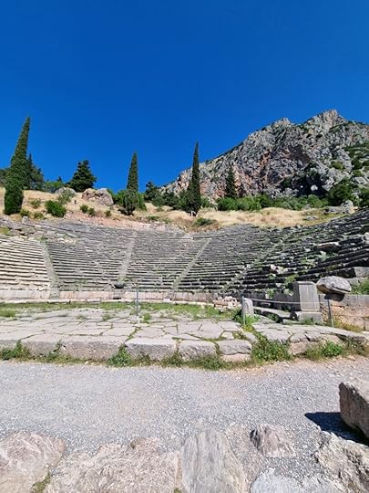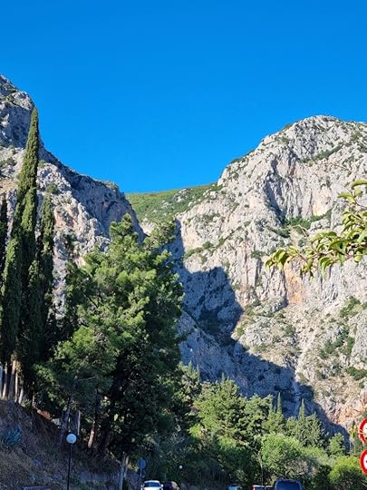 Phaedriades, off which criminals (& French people) used to get chucked for sacrilege. I wonder what happened to that Hellene in the bread truck? Something lovely, I hope. I think about my kind, erudite ancient history professor at uni, Doug Kelly, now dead, and salute him. I get briefly angry about the damage inflicted (by warlords and zealots) on the Parthenon and of course Apollo’s precinct at Delphi – but then I remember my crackpot comfort-theory, which goes something like this; all that ever was, is and will be, and in the complex illusion that is time and space, on one of life’s trillion-squared pathways, Socrates still walks the agora, discussing the Good (ο αγαθός).