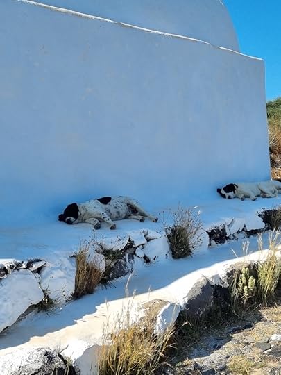 Naxos has got me thinking about them because, well, they’re all over the place. Back in Oz, older women wear one-piece swimsuits with frilly bits around the tummy and little skirts over the thighs because, you know. Older men wear whatever, because men will, whatever (fancy a shirtless hunk on a scooter with his beer belly hanging over the handlebars? Greece is your ticket). On the islands, people don’t seem self-conscious about imperfect bodies. Possibly they are at home, but here just about every woman wears a bikini, irrespective of fat rolls, droopy bits, acres of burned skin, etc. It reminds me of something I read in a book, My Brother Jack (which I didn’t like, btw), where the hero has to draw naked older women in Life Drawing Class. He’s thoroughly disgusted, naturally. So should we be?