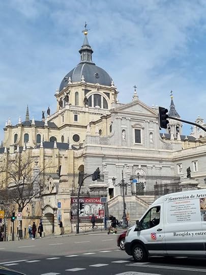 The Catedral de la Almudena, huge, you have to stretch your neck to take in all the domes and turrets. Inside, it doesn’t feel particularly sacred – lots of gilt and saints. Nevertheless I thought of Felix, my son, and found myself overwhelmed with misery – I had to put my sunglasses on and hurry out. Churches perhaps are not for me right now, not yet. I did like the Homeless Jesus, outside.