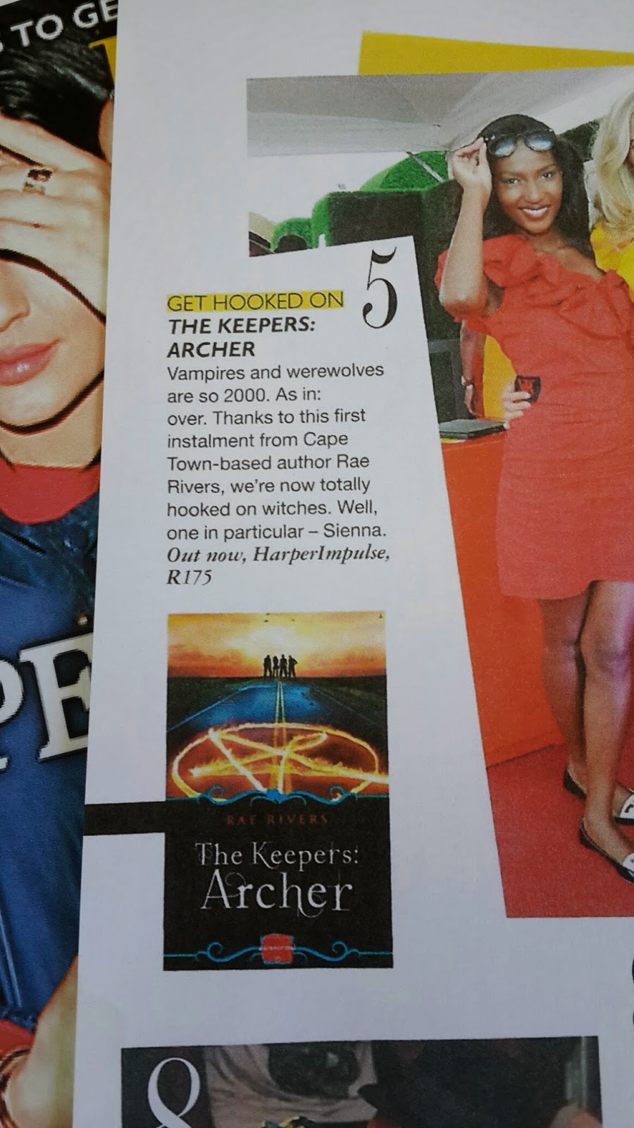 And best of all is their fabulous comment:"Vampires and werewolves are so 2000. As in: over. Thanks to this first instalment from Cape Town-based author Rae Rivers, we're now totally hooked on witches. Well, one in particular - Sienna."