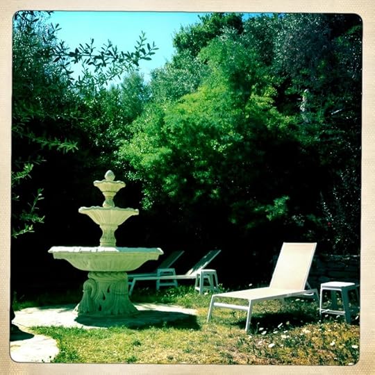 Jag tar en djup klunk och ställer den immiga flaskan på det lilla träbordet mellan solstolarna.