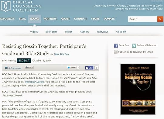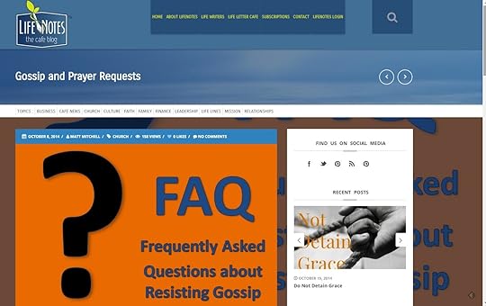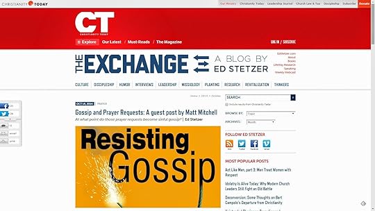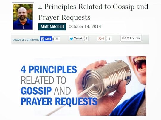 Yesterday, Ed Stetzer and the Biblical Counseling Coalition both ran versions of my "Gossip and Prayer Requests" article on their blogs, which makes 3 guest post versions of the article, including the LifeNotes one from last week.