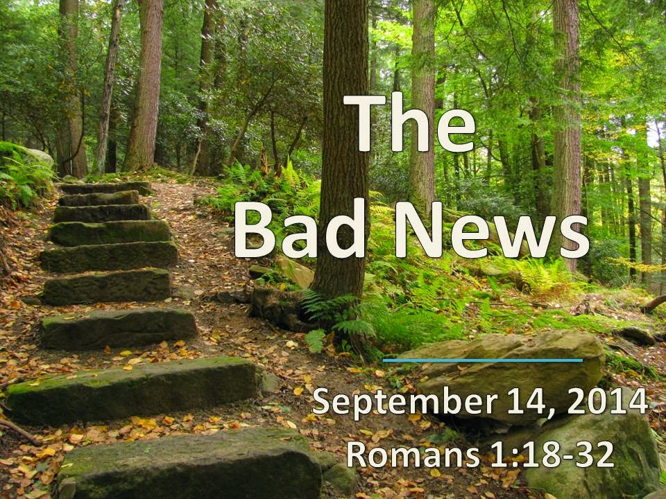 Now, I’m just going to tell you that this week is going to be depressing. This is a sermon on the bad news. And the bad news section of Romans runs from chapter 1, verse 18 all the way to chapter 3, verse 20. So, prepare your minds for a lot of bad news over the next few weeks.