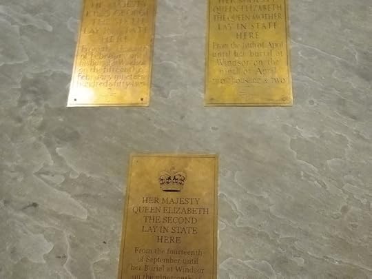 Here’s a plaque on the floor to commemorate where Queen Elizabeth’s body lay in state last year after she died and before her funeral. If you saw the 10 mile long queue? This is where it ended.