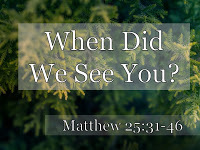 “Then he will say to those on his left, 'Depart from me, you who are cursed, into the eternal fire prepared for the devil and his angels. For I was hungry and you gave me nothing to eat, I was thirsty and you gave me nothing to drink, I was a stranger and you did not invite me in, I needed clothes and you did not clothe me, I was sick and in prison and you did not look after me.' They also will answer [same question], 'Lord, when did we see you hungry or thirsty or a stranger or needing clothes or sick or in prison, and did not help you?' He will reply, 'I tell you the truth, whatever you did not do for one of the least of these, you did not do for me.' Then they will go away to eternal punishment, but the righteous to eternal life.”