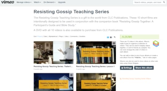 The videos we created a few years ago to go with Resisting Gossip Together have now been uploaded to my Vimeo channel and arranged into an album. [They are already available on YouTube.]