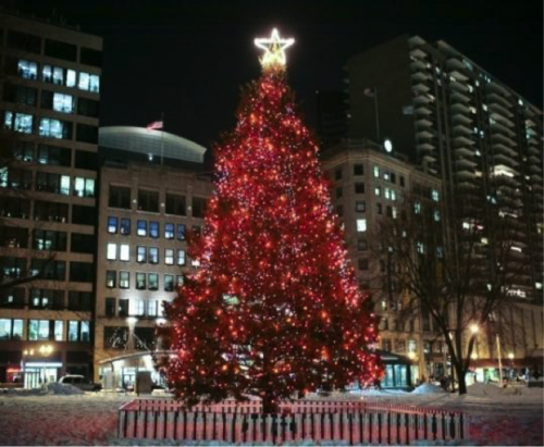 Every Christmas tree is special, but the magnificent evergreen that glitters each year in Boston’s Prudential Plaza is unique. It’s a holiday symbol with a deeper meaning, a special gift in remembrance of help provided in a time of desperate need many years ago.