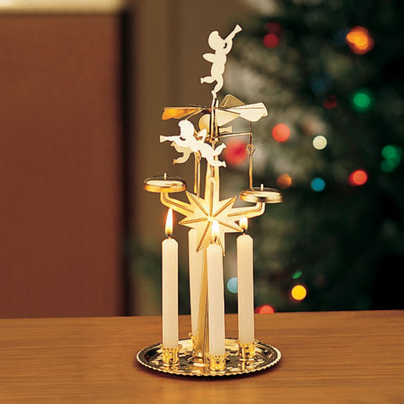 Sometimes, it's the small things that mean Christmas. I recall when this flying angels came out. You lit a couple candles, and the heat caused the blades to turn, and three angels with trumpets would spin around. Silly. Cheap.Little clappers would strike bells. But I recall watching it and the shadows it would through in a dark room and I would feel the world was okay. I sure wish I had a set of them right now.