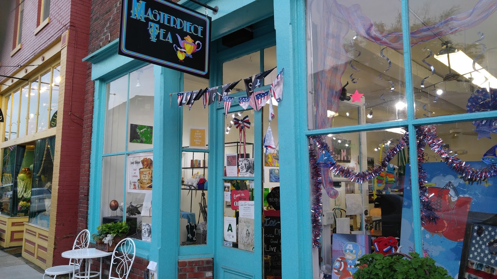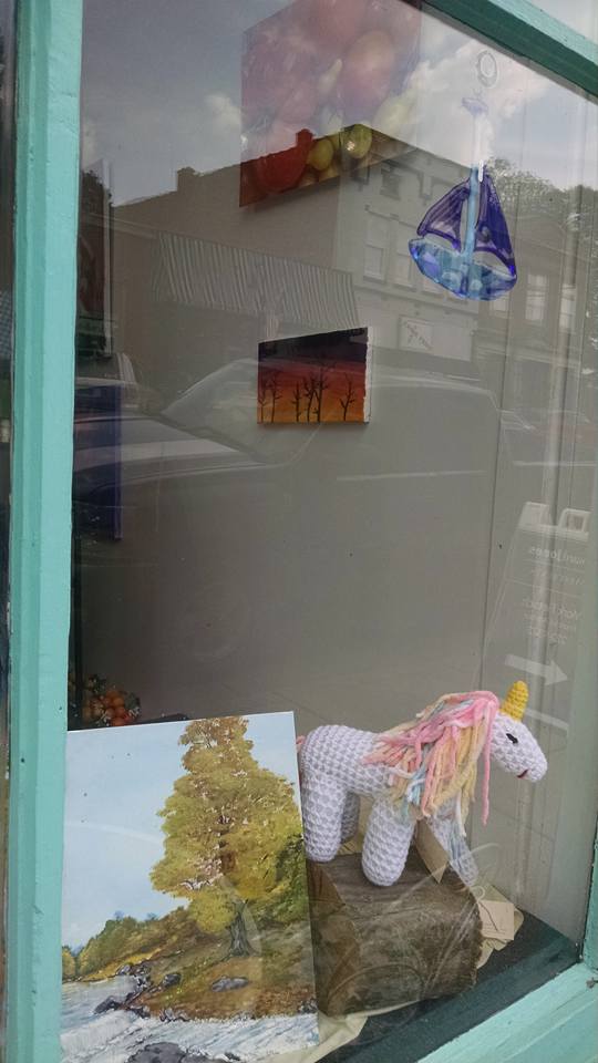 What a nice, wonderful surprise!! Masterpiece Tea in La Grange KY just put up their new front window display, and they included my new anthology from Prairie Rose Press.