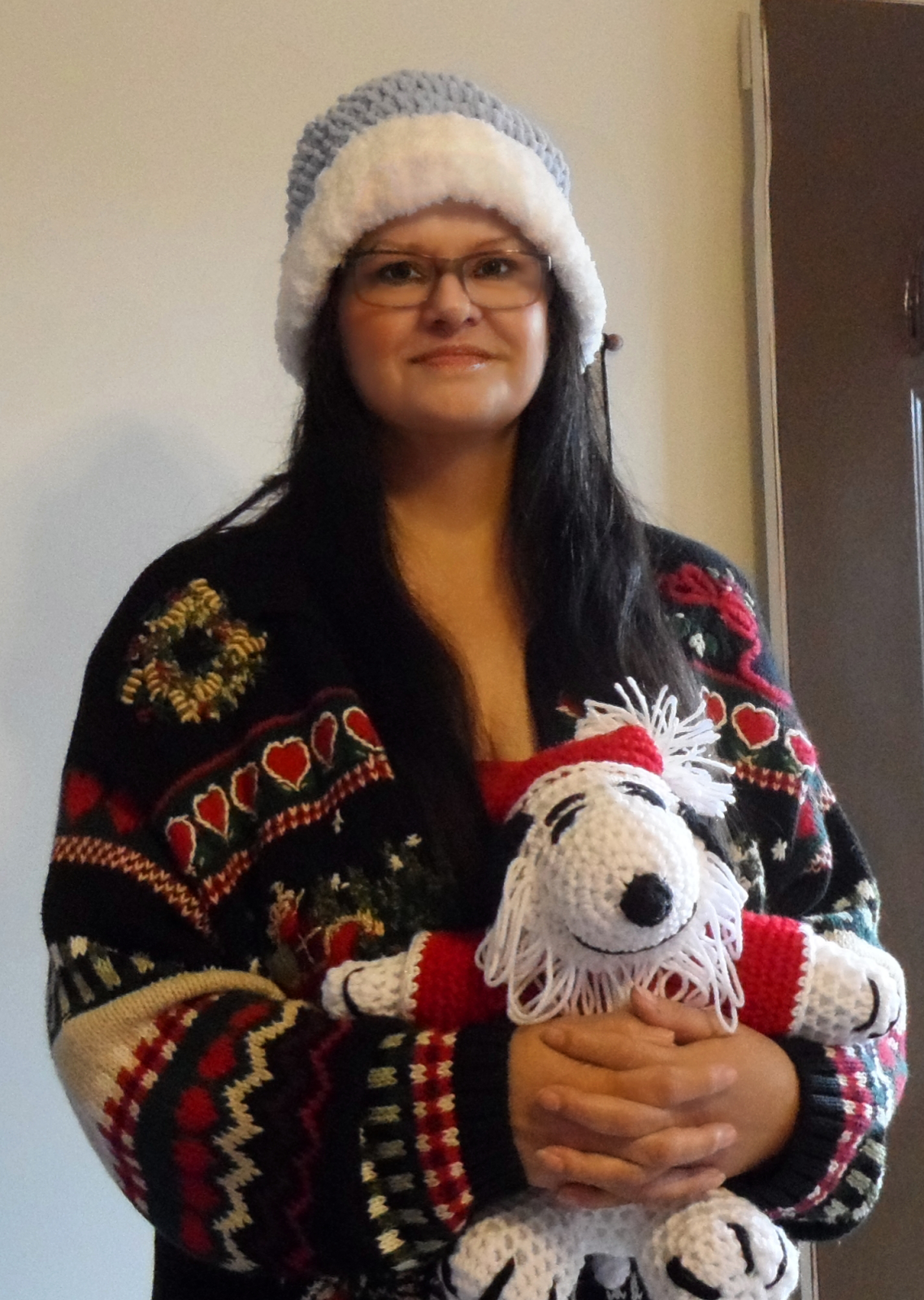 Here I am holding the Christmas Santa Snoopy Candy made for me.
