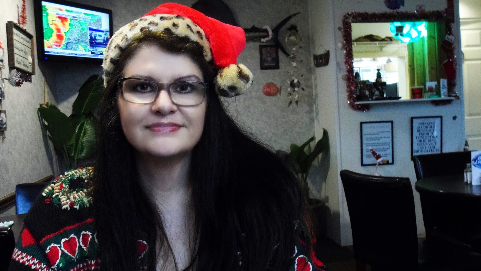 Me in my big ugly Christmas sweater and wearing the hat Candy made me.