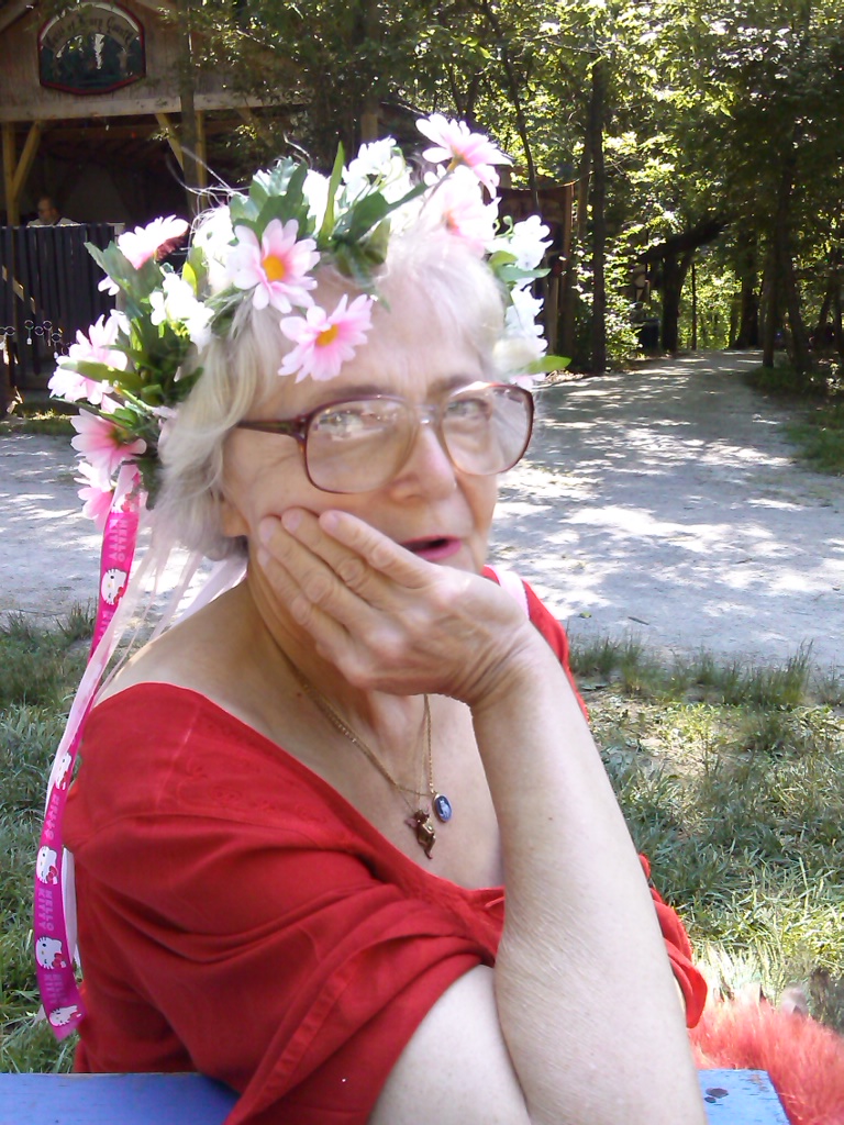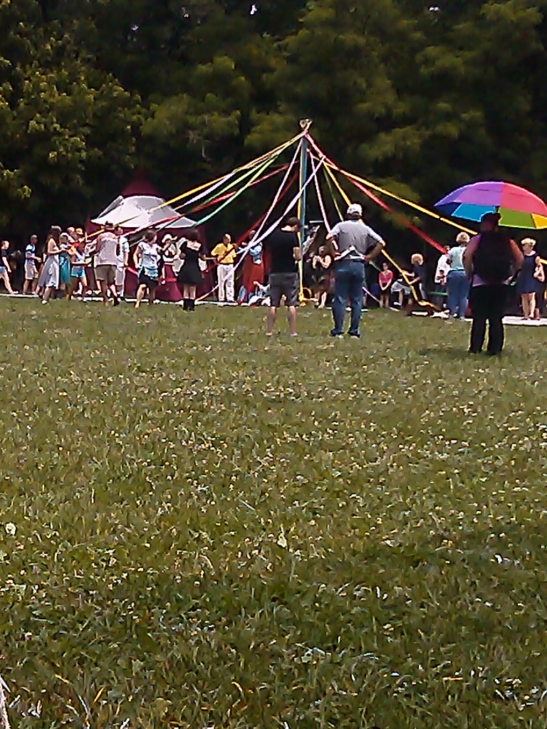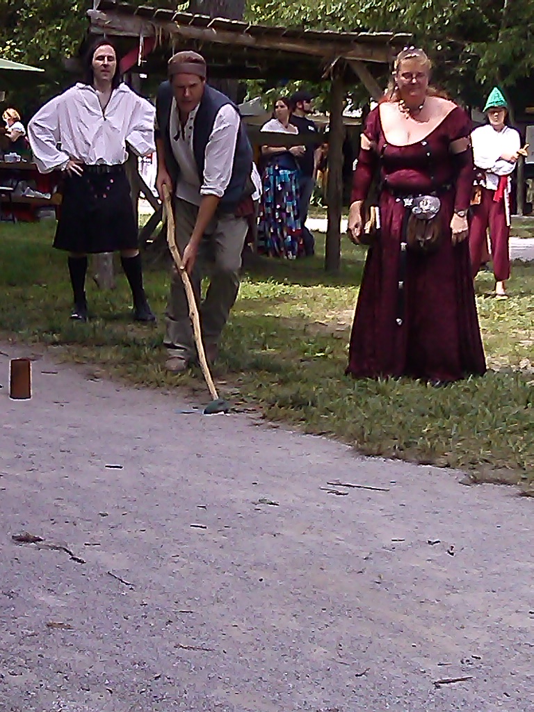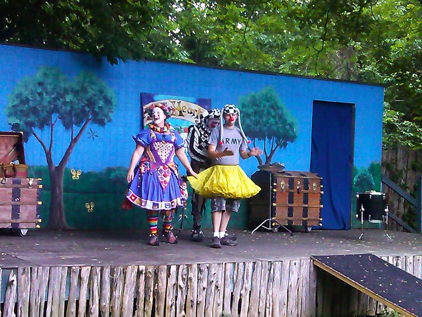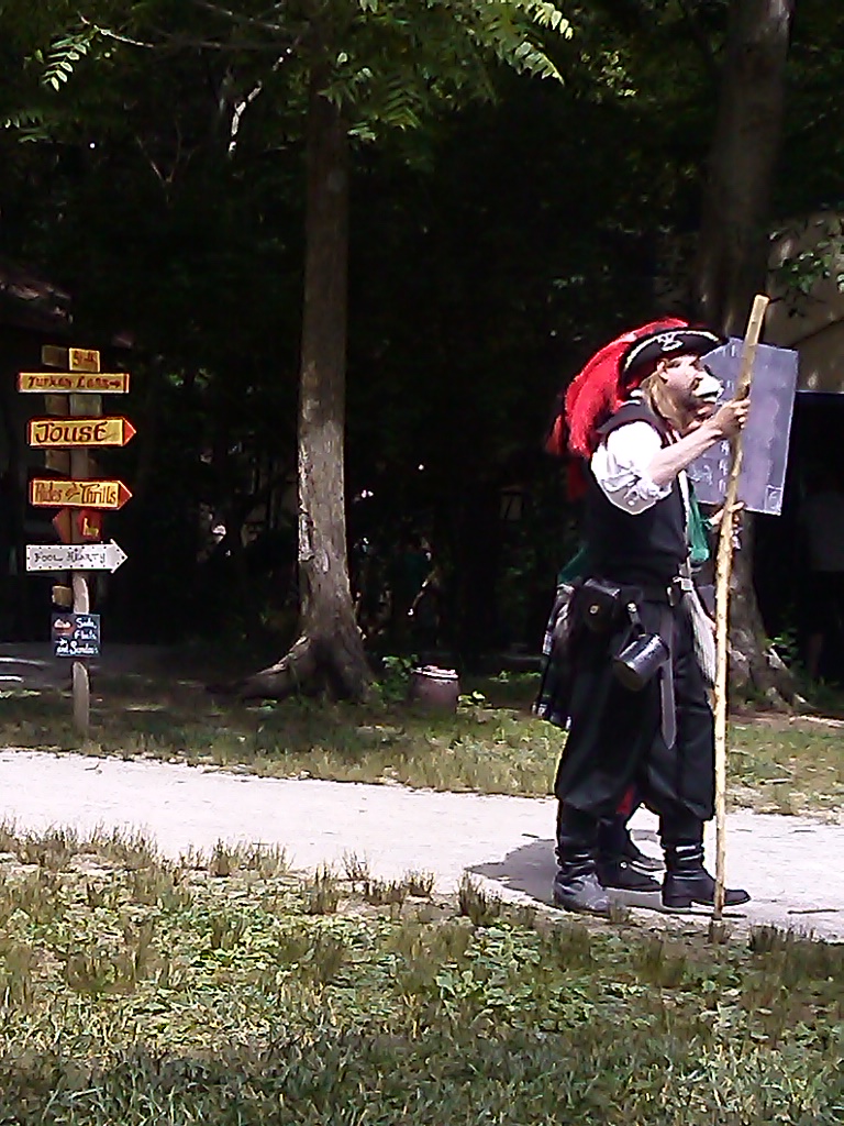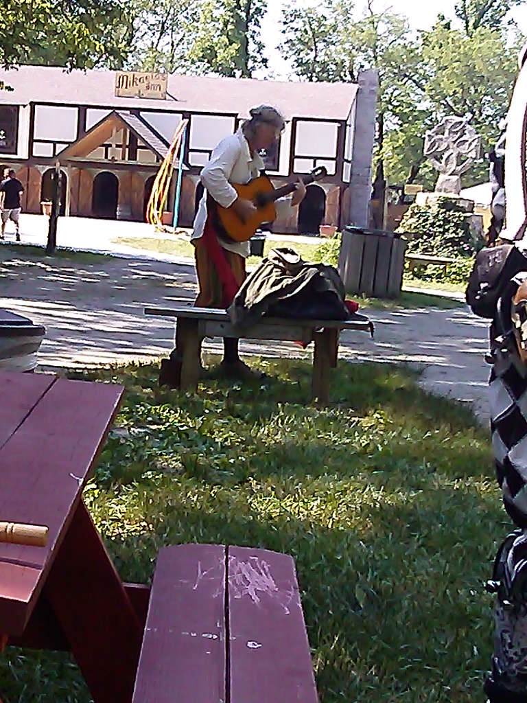 Our Fifth weekend at the Kentucky Highland Renaissance Faire was hot and humid, but it was HUGE crowds on both days. Fool Hardy, Tara and Mark Reed (Ima Nutt and Marquise) were playing to standing room only. In the audience was Mark's father and aunt.