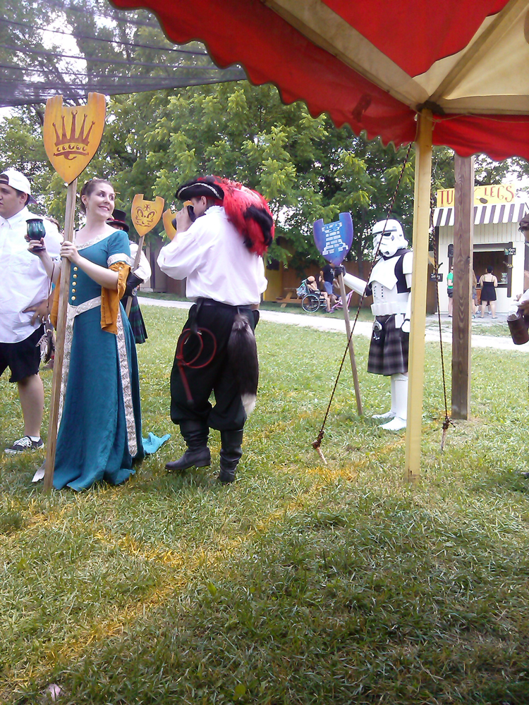 Week 3 of the Renfaire was a Masquerade and Father's Day Celebration. Fathers got in with paid kids admission. Of course, Candy and I have seasons passes. We were a bit late in arriving due to me having a rough night with my knee. But we arrived just as everything was in full swing. Candy looked adorable