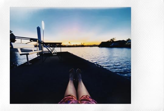 Sitting on the dock in the twilight with my big kid, watching a storm roll in.