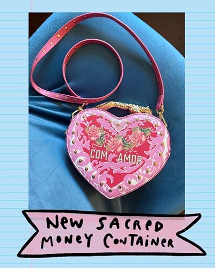 I felt symbolically I needed something that could hold my gold. Louis Vuitton isn’t really my colourful maximalist style, plus I wasn’t at the point of feeling joyful in spending thousands on a purse. I ended up buying a pink heart handbag from Camilla that says “COM AMOR” on it – “With Love.” That felt like a beautiful upgrade.