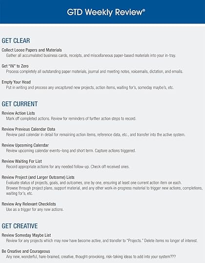 But here’s the crucial distinction: the inbox must be emptied once a week as part of a “weekly review” process. Everything is either filed, trashed, or added to your to do list.