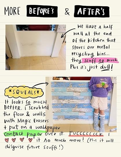 DIY + Creative ProjectsI fucking NAILED cooking, including making some spelt cinnamon & berry scrolls. Remember 9 years ago when I made a joke ebook called “How To Be A Domestic Goddess“? And it was a joke because it was mostly empty, which summed up my domestic knowledge at that point. And now I actually COOK and BAKE and shit! Fuck me, I’m the complete package! HA!I also got obsessed with interior designI wallpapered a half wall & got a new art cupboard!Made a drop zone for school bagsDid a reno of my eldest kid’s desk & made a desk hutch for it as well!Restained my office doorDrew covers of books I’ve read