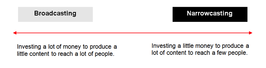 It was something we studied in broadcasting in 1990. Instead of three channels, like people had in the "old days," we'd already gone to more than 100. We knew even then that the future would bring even more channels. We discussed the possibility that someday people could just watch whatever they wanted, whenever we wanted. And no, we had NO idea something called the internet would bring that!