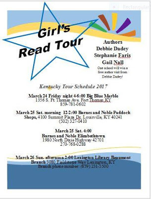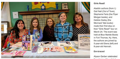As the flyer above shows, our tour began in March in Kentucky. My fellow Girls Read Tour authors Debbie Dadey and Gail Nall introduced me to an incredible bookstore in Fort Thomas, Kentucky called Blue Marble Books. Our visit even made Publisher's Weekly!