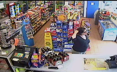 Although there's no audio on the footage, the clerk said she asked for pain reliever after not being able to find it in the aisles. There were no indications anything was wrong in the Sonoco footage, either.