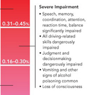 The legal blood alcohol limit is 0.08. At 0.19, a person is said to be impaired in the following ways: