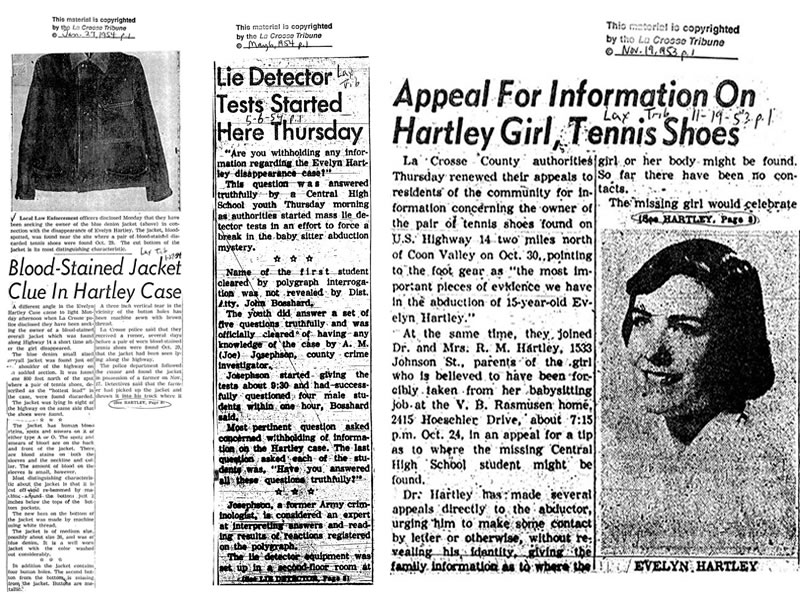 The 50s were an innocent time, where families felt safe raising their children. Evelyn Hartley's story is especially touching not only because it happened in 1953, but also because it happened in the small town of La Crosse, Wisconsin.