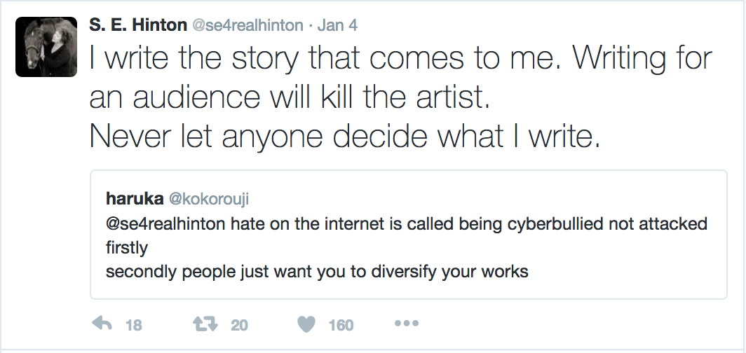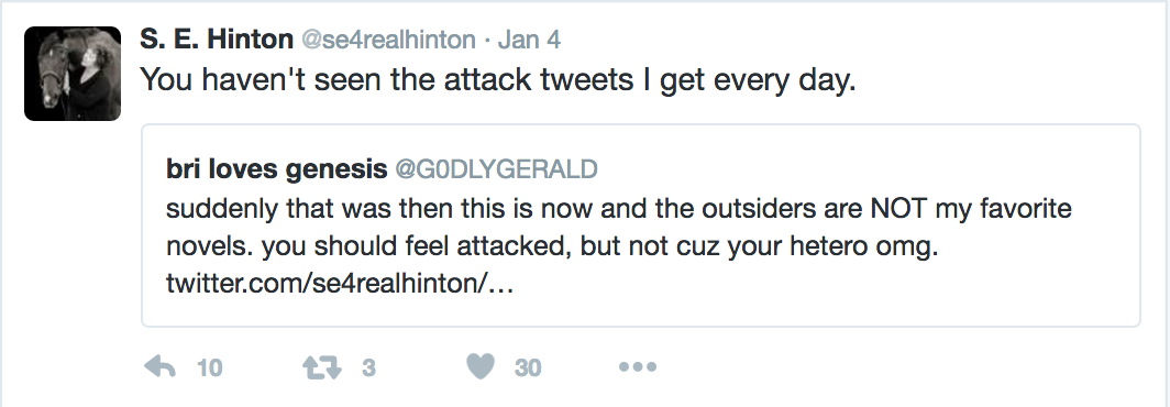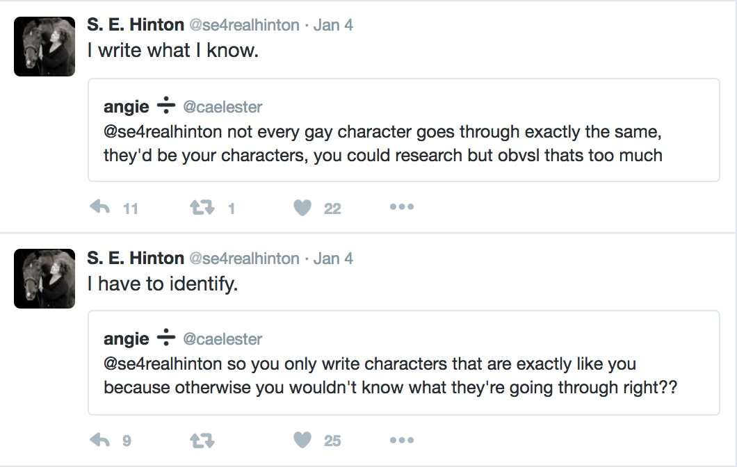 Last week, an ongoing controversy fired up yet again on Twitter. In one corner was S.E. Hinton, author of The Outsiders, among other books: