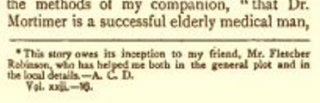 Doyle also paid his friend, Fletcher Robinson, £500, which was a lot of money for the time. Robinson died in 1907 but before his death, he published a series of short stories that listed him as a "joint author with Sir Arthur Conan Doyle" in the Baskerville stories. Doyle did not deny the claim.