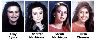 Seventeen-year-olds Jennifer Harbison and Eliza Thomas were working the counter that night. Jennifer's 15-year-old sister, Sarah, was hanging out at the shop with her 13-year-old friend, Amy Ayers. They were catching a ride home with Jennifer after hanging out at the nearby mall.