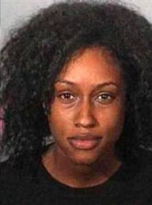 The police gave her a sobriety test and determined she was sober. Going through her car, they found some marijuana, which she admitted was hers, and arrested her for "defrauding an innkeeper" and possession of marijuana (a misdemeanor). This is her mugshot:
