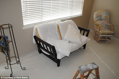 The house was empty. It looked as though the family had left suddenly. There were two bowls of popcorn on a futon in front of the TV and raw eggs on the kitchen counter.