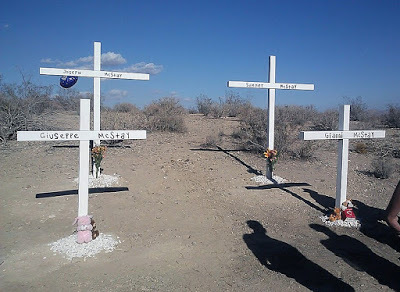 Four crosses were erected at the spot in the desert where the remains were found.