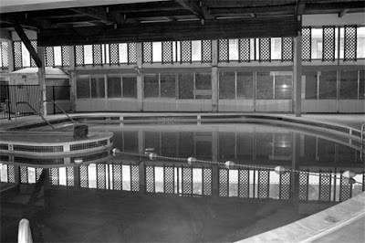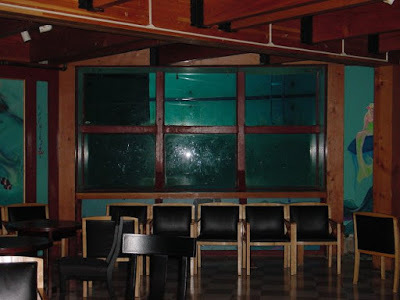 The pool was visible from the bar. People have reported seeing a young girl floating in the pool through this window in the bar: