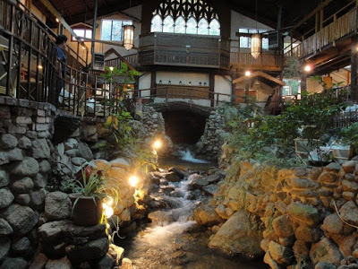 Built in 1890, the lodge peaked in the 40s and 50s, when visitors included Marilyn Monroe and President Herbert Hoover. It was notable primarily for the stream running through its main restaurant, known as the Brook Room.