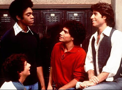 A fan of the show wanted to know where the artist had gotten this scene, since it wasn't in any of the episodes. (He'd watched them all numerous times.) Why is the jean jacket knotted? And why does Epstein look like he wants to fight Barbarino? They were friends.