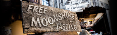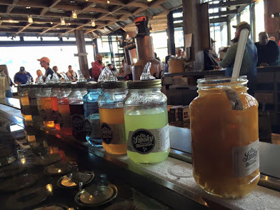 They do "moonshine tastings," which involve 13 tiny shots of different types of moonshine. People (including parents with young children) were lined up all around the bar for the show.