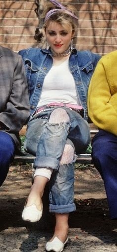 Jeans with torn knees became huge later in the 80s, by the way. Some people even drew on their knees. Madonna wore lace leggings under hers.