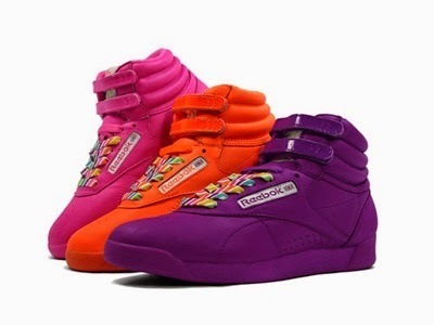 While the word "kicks" has long been a nickname for shoes, in the 80s it was used for athletic shoes. And in the 80s, we rocked the athletic shoe. There were colorful high tops.