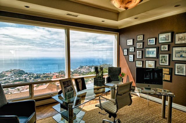 This one isn't a writer's room, but Rick's Photography pulled this photo of a home office with a view from a Laguna Beach listing.