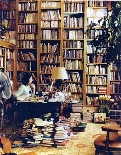 One thing I'm fascinated with is writing rooms. Writers often share photos of their offices, which are basically desks surrounded by piles and piles of books.