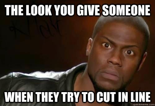 Your kindergarten teacher may have shown you how to line up, but there's no point in calling upon that information now. It's survival of the fittest. If you see a line of people waiting for multiple cashiers, ignore that line and hop behind someone who's already checking out. Sure, people will be mad, but most of the time they'll be too polite to yell at you. It's the perfect crime.