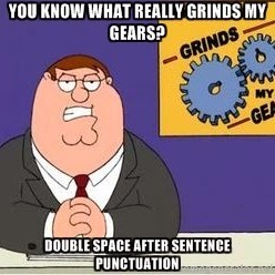 Yet, as this article pointed out, there are numerous people who will vehemently argue that there should be two spaces after every sentence.