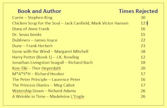 Still, you're expected to keep going. You try telling yourself rejection is a part of the process. Some of the best books ever written were rejected multiple times.