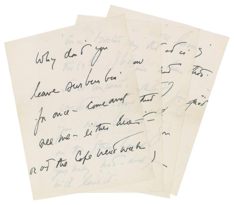 The four-page letter read: "Why don't you leave suburbia for once — come and see me — either here — or at the Cape next week or in Boston the 19th. I know it is unwise, irrational, and that you may hate it — on the other hand you may not — and I will love it. You say that it is good for me not to get what I want. After all of these years — you should give me a more loving answer than that. Why don't you just say yes." It was signed "J." The letter was retained by Kennedy's personal secretary and sold at auction in 2016.