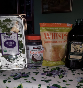 Leona: “Love all your Wheat Belly books, which I bought at Costco. These are just a few things I’ve bought. The Spring Mix is used for our salads, the Coconut Oil is almost gone. Use it all the time for cooking instead of butter and use it as a face and body lotion. The Whisps are a great snack by itself or used in salads or instead of a cracker, so good! The Olive Oil is used for sauteing veggies, salads and I give to my cats mixed in their food. No fleas or hairball for my cats!”